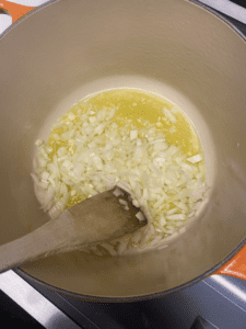 El día previo suelo hacer caldo de carne, con sus huesos de jamón, rodilla y carcasa de ave… Se deja hacer durante 1 hora a 1 hora y media aproximadamente para que se concentre un poco el sabor.