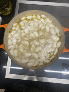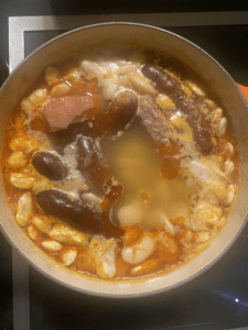 Además, os recuerdo que en ese tiempo hay que hacer dos cosas; «Asustar» dos veces a las alubias, que básicamente es poner agua fría o caldo de carne que hicimos frio, para que nos queden unas alubias chulas ( se puede espaciar en esas 3 horas ). Yo, le quito durante todo ese tiempo, tanto la espuma como la grasa que vaya saliendo para que nos quede un caldo limpio. Al final de todo, se ajusta el punto de sal, si hace falta.