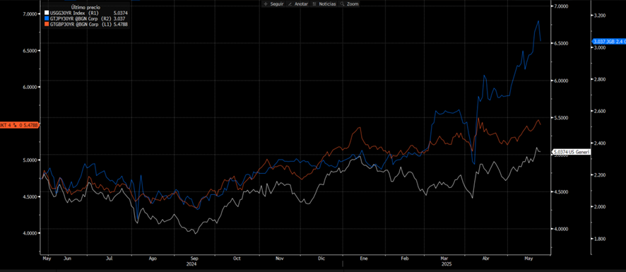 Años atrás venimos hablando reiteradamente sobre el nivel de deuda mundial, y en particular de la potente economía americana. La semana pasada se hizo evidente una vez más esta problemática con la bajada de rating de la agencia de calificación Moody’s a las emisiones de Estados Unidos. Este fenómeno no está grave a tenor debido a que las otras dos grandes agencias ya habían rebajado esta calificación años pasados sin efectos notables. En este caso, el efecto ha sido un poco más relevante, tensionando la rentabilidad de los tramos más largos de la curva debido a la coincidencia de esta noticia con la aprobación del paquete fiscal de Trump que en lugar de aminorar el déficit, lo incrementará. Como ejemplo, los recortes previstos en Medicaid parecen ser menos agresivos de lo que originalmente se pretendían. Así las cosas, como referencia, el bono a 30 años se colocó por encima del 5% y las tasas hipotecarias por encima del 7%.