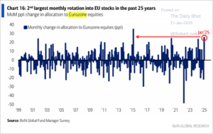 Como indicamos en nuestro Informe 2025 Haciendo Malabares, esperábamos un mejor comportamiento en Europa vs Estados Unidos, y así está siendo, ver Gráficos 2 y 3. Es curioso, que estamos ante una de las tres rotaciones más altas desde el 2000, se produjo en 2002, 2014 y este año.